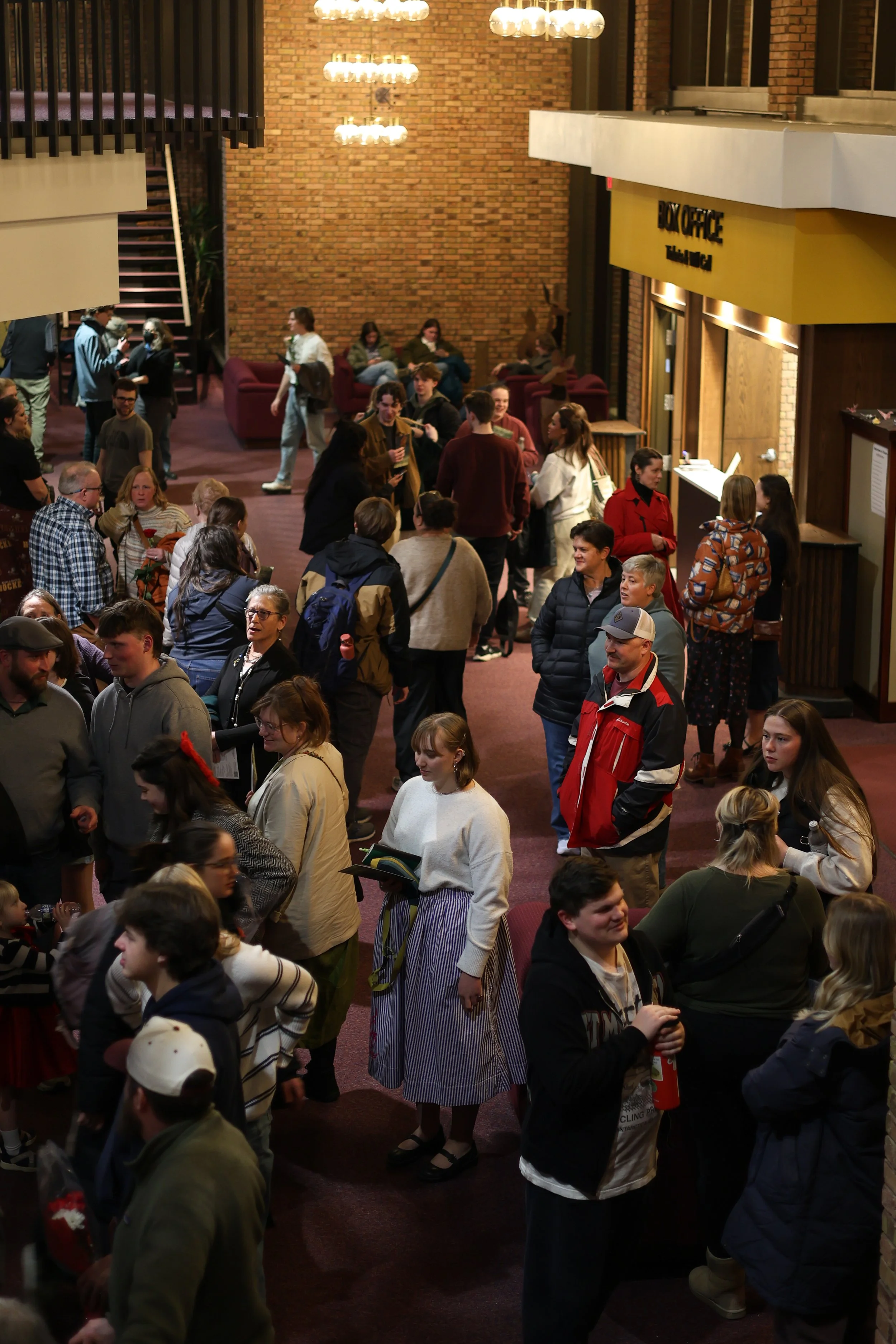 Cast, crew and audience mingle after the debut show on Friday, Feb. 13. Photo by Macie Groth