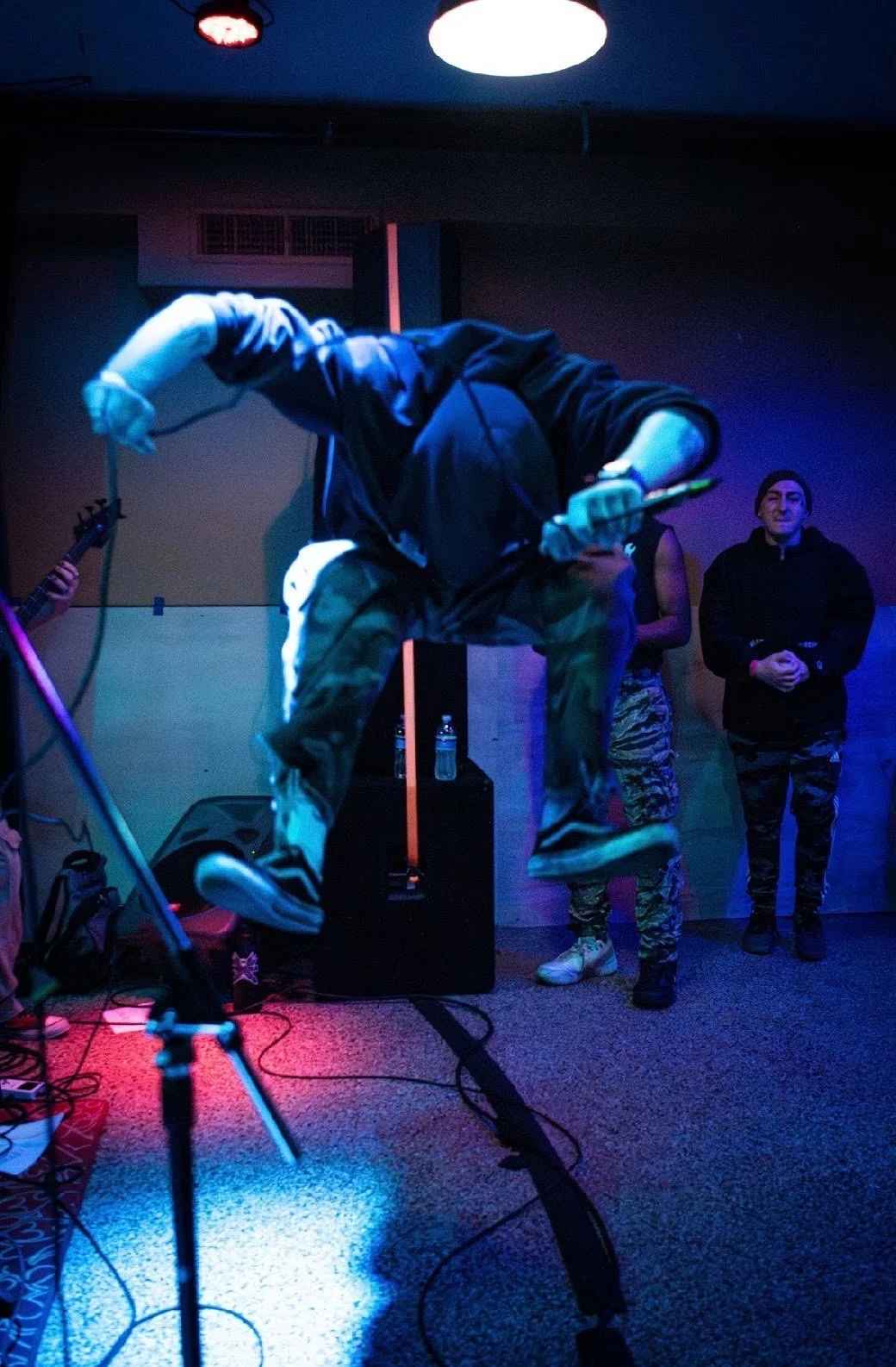 Pinmissile band member jumps during a show. Photo Credit @burymeinmemories on Instagram