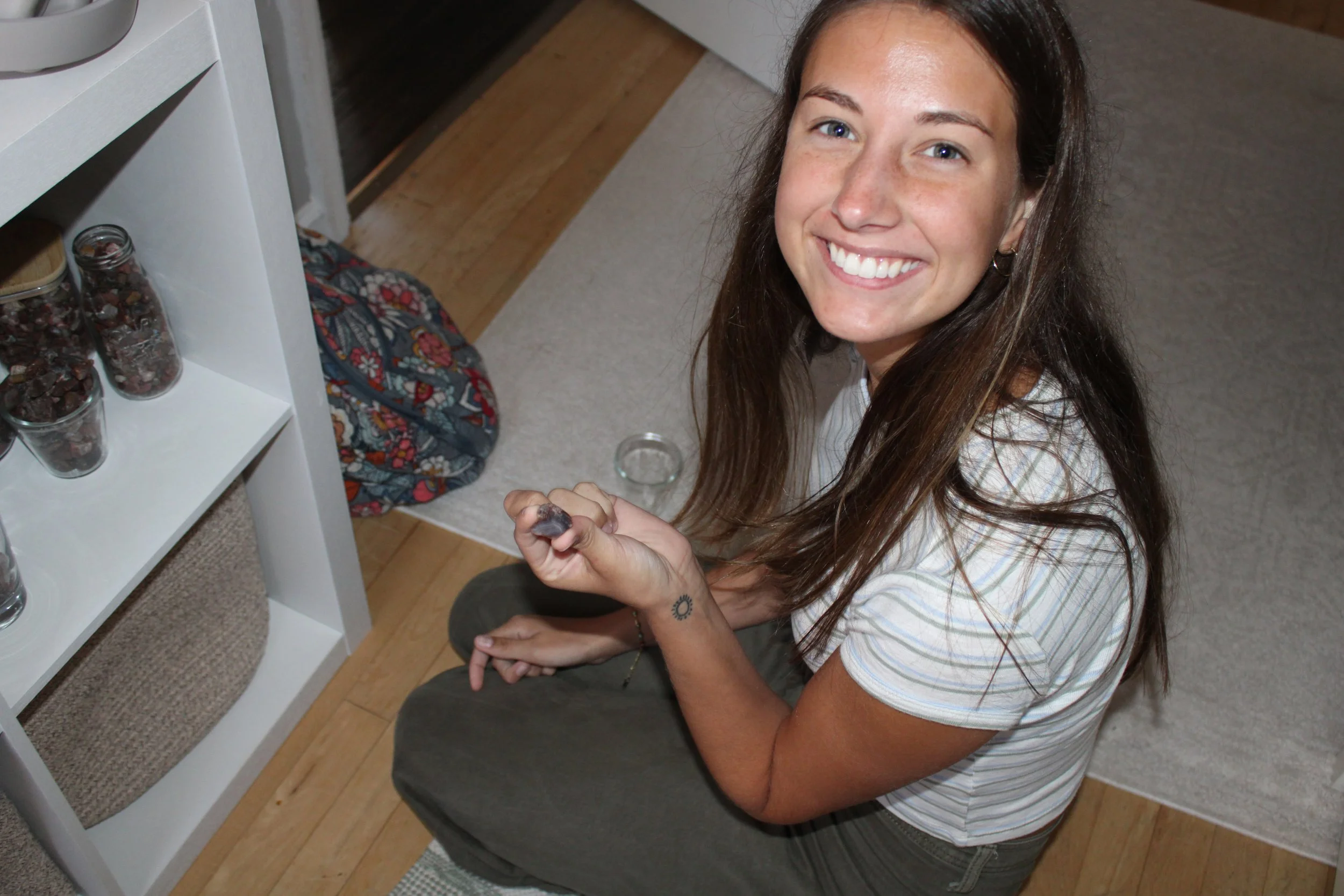 Mentz with her agate collection. Photo by Hanna McGuire