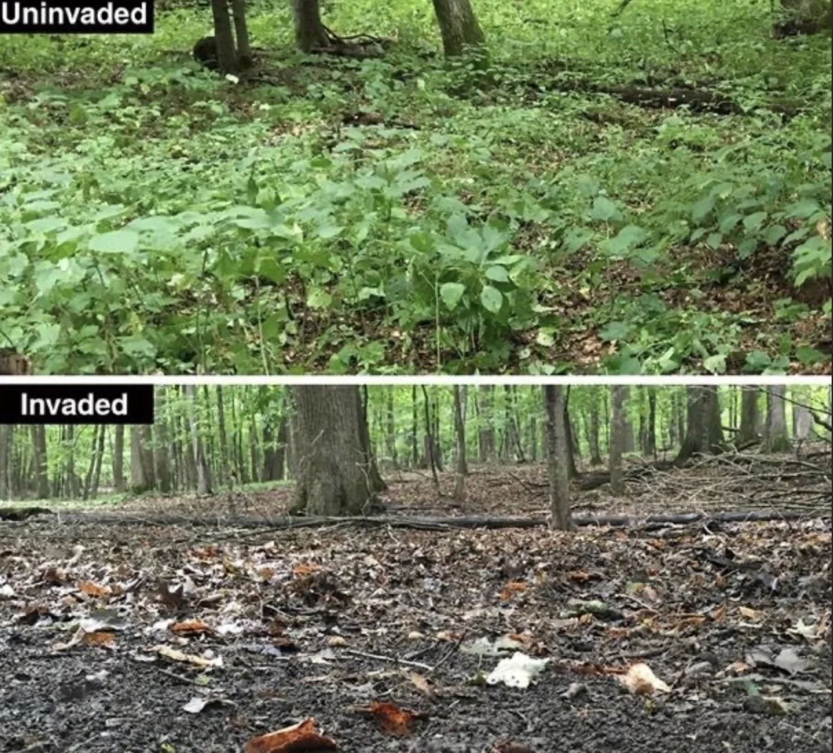 However, many native plants in the forest depend on this layer of leaf litter for help in planting their seeds.