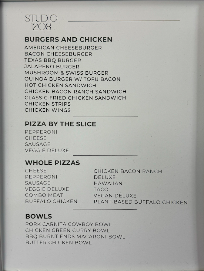 Studio 1208’s current menu. Photo by Ben Carpenter