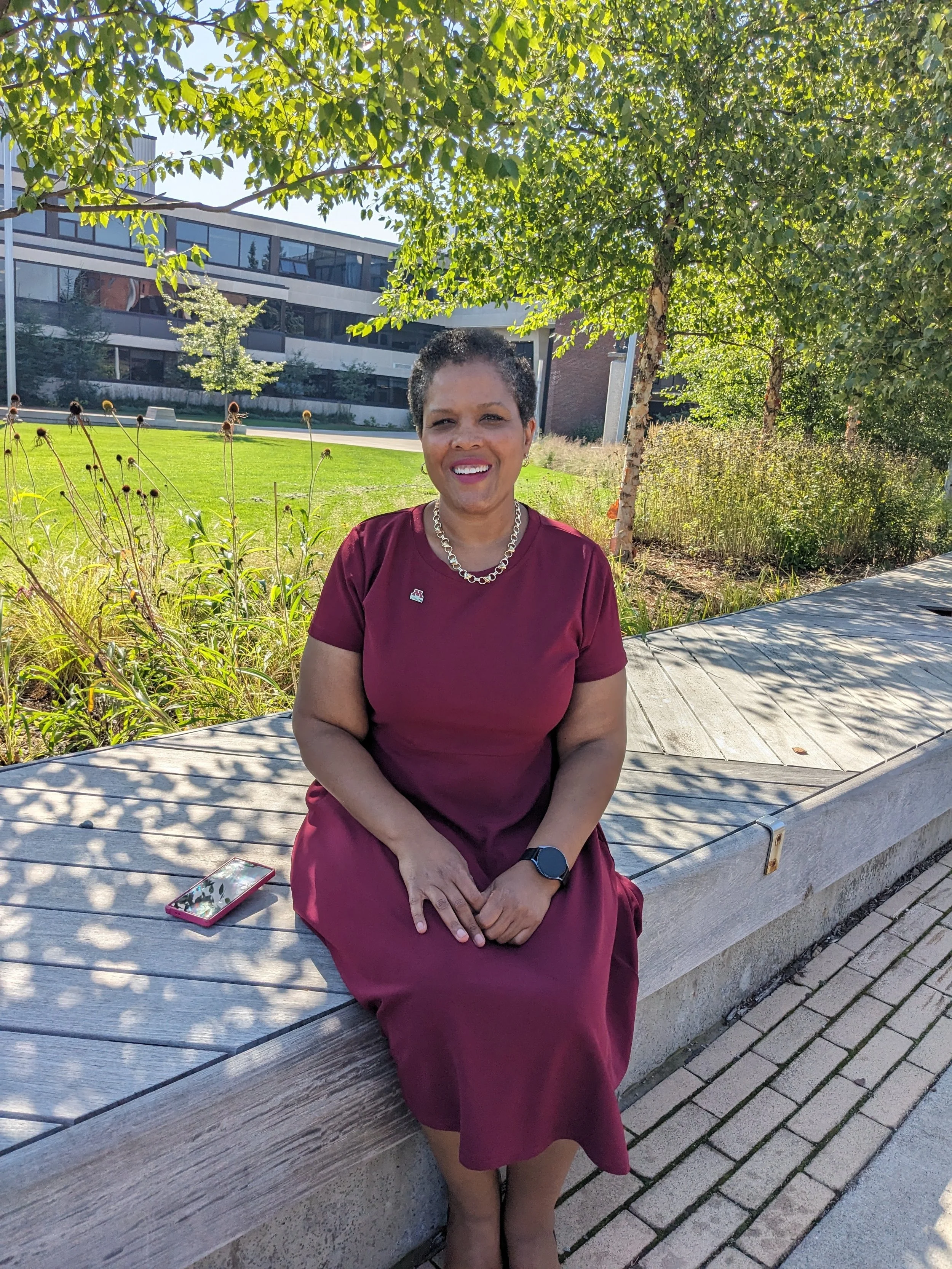 Dr. Kay Robinson sits in Ordean Court. Photo by William Bauer