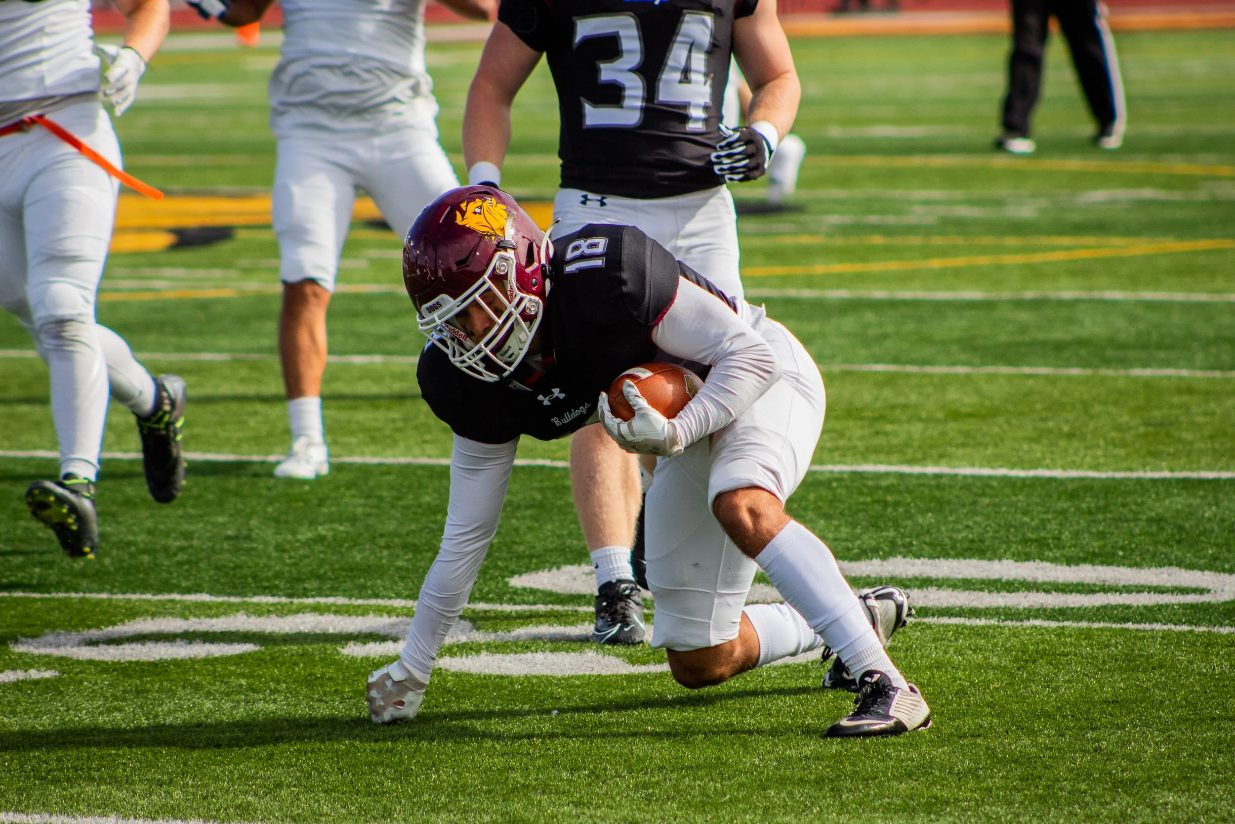DB Isaiah Hampton rises from the gridiron after making the 1st down.