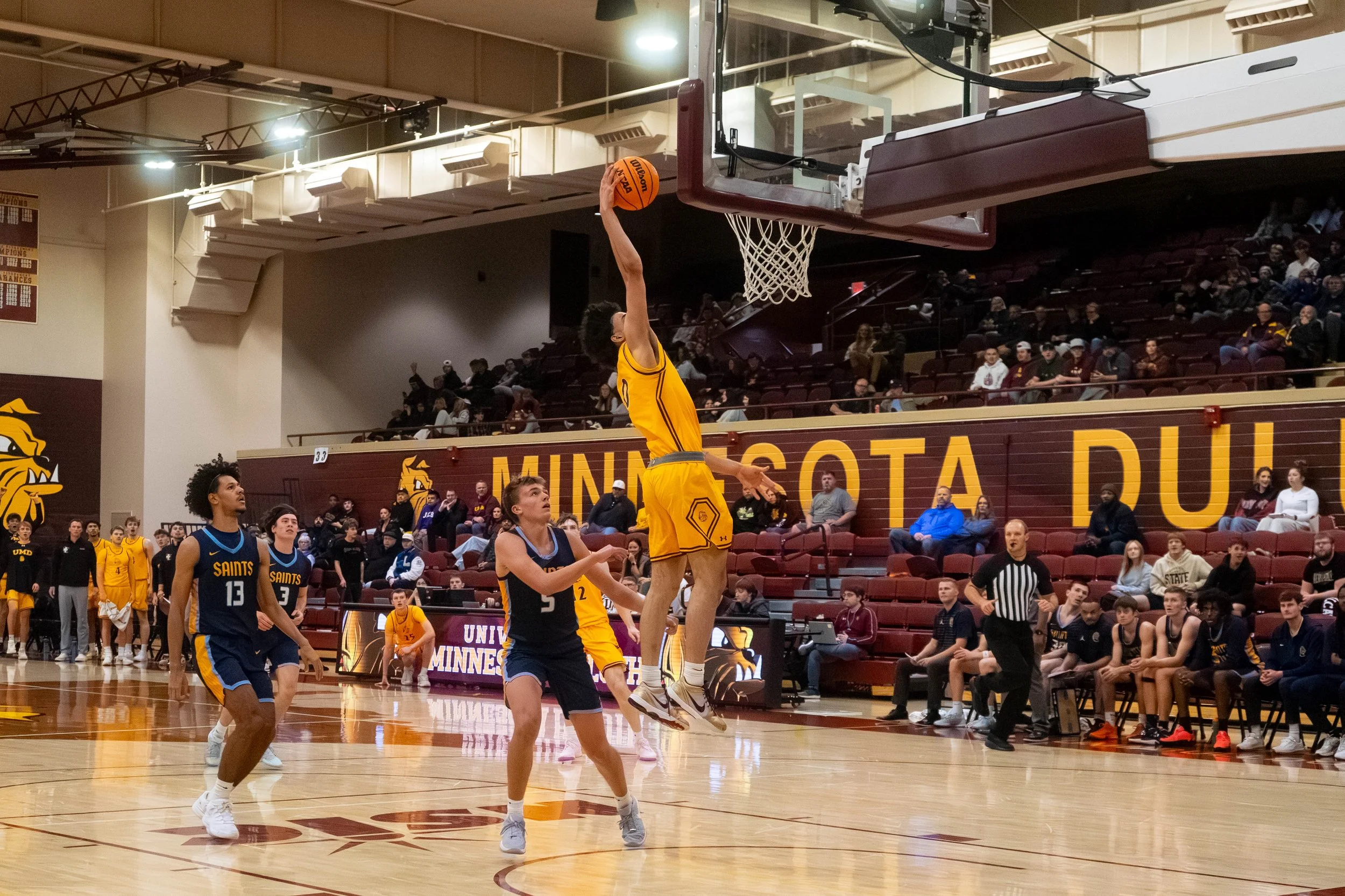 Caleb Siwek led the Bulldogs with 21 points, followed by Nick Katona with 14 points, and Jaden Morgan with 10 points. UMD had 44 rebounds, while Scholastica had 27. UMD had 8 steals, while Scholastica had 2, but Scholastica forced 11 turnovers compared to UMD’s 9.